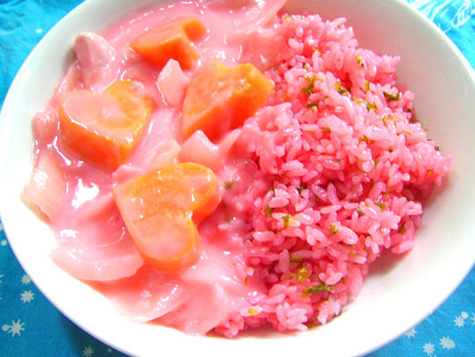 シチューが桃色で何でか甘ったるい香り