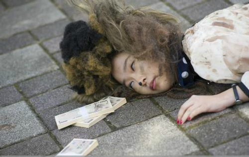 女子の顔には数発殴られた跡。